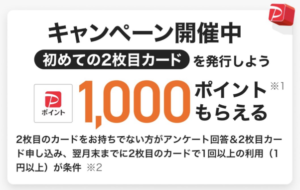 【簡単に1,000P】PayPayカードの2枚目発行&利用キャンペーン