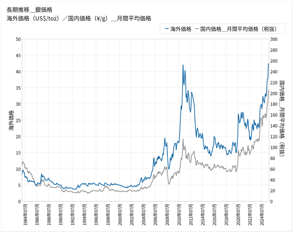 ちなみに、銀価格の推移は以下のような感じです。