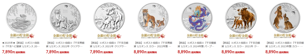 私は、知人への直近のプレゼント用に、その知人の生まれた年の干支の1/2オンス銀貨を購入することにしました。
