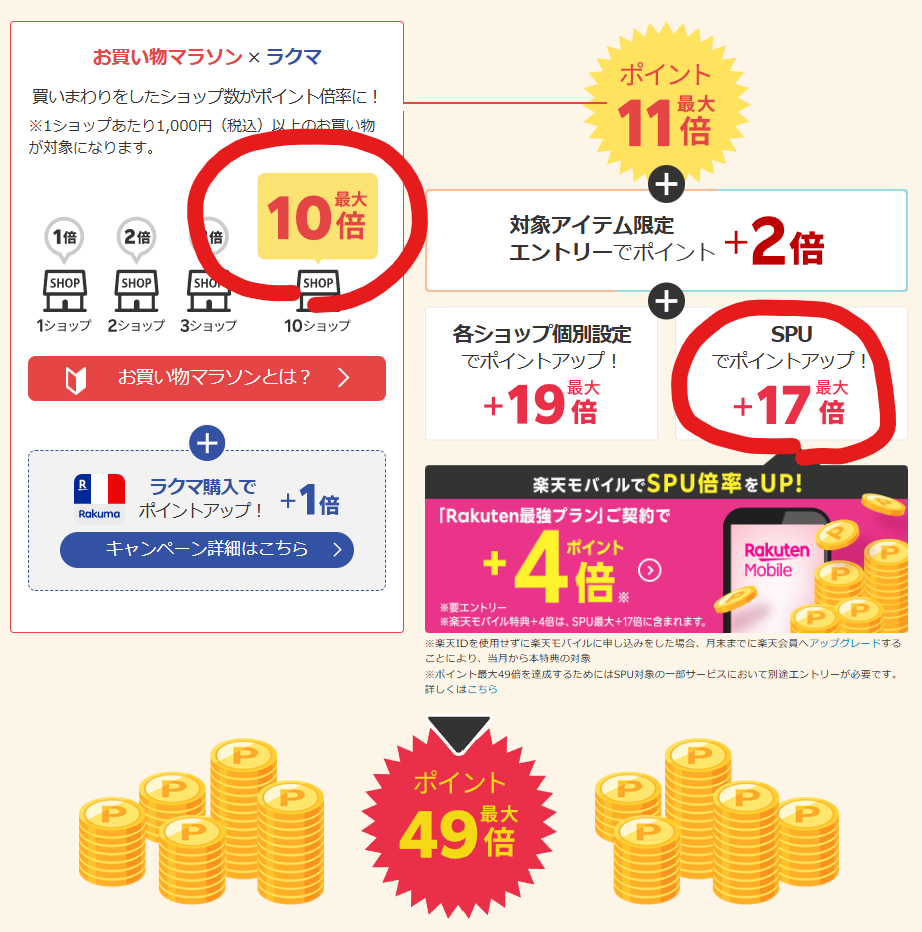 楽天モバイルの契約があれば、SPUの還元率が+4%になります。