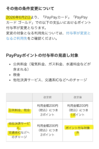 2026年6月2日から、PayPayカードから各種チャージ系の利用について還元率が0%になります。