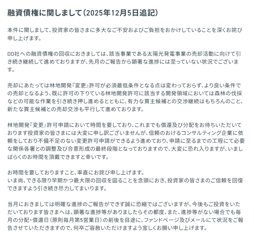 ⚠️クラウドバンクの太陽光発電ファンドの融資返済、引き続き遅延中