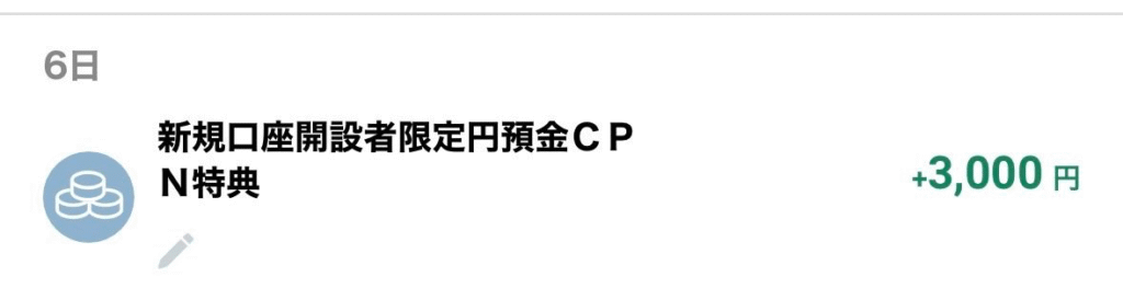 アプリから要エントリーです。10万円以上の残高がある状態でエントリーが必要です。2025年9月30日時点で円普通預金残高10万円以上を維持できていればOKです。2025年10月末に特典が付与されます。キャンペーンページはこちら。 - 現金3,000円 新規口座開設者限定デビットカードキャンペーン