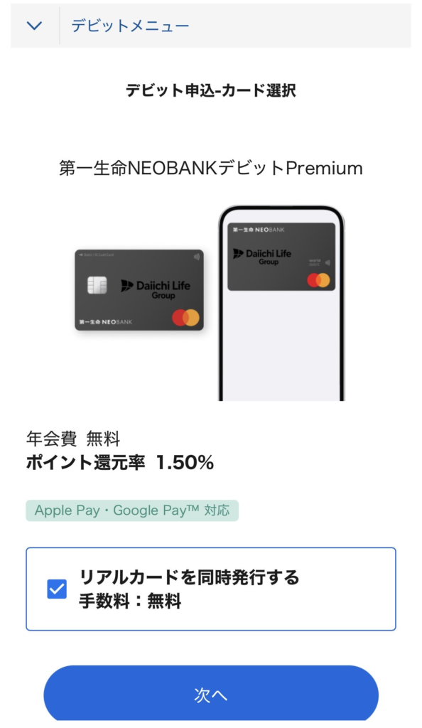 【1.5%還元】第一生命NEOBANKデビットがリニューアルでPremiumに ※キャンペーン情報あり