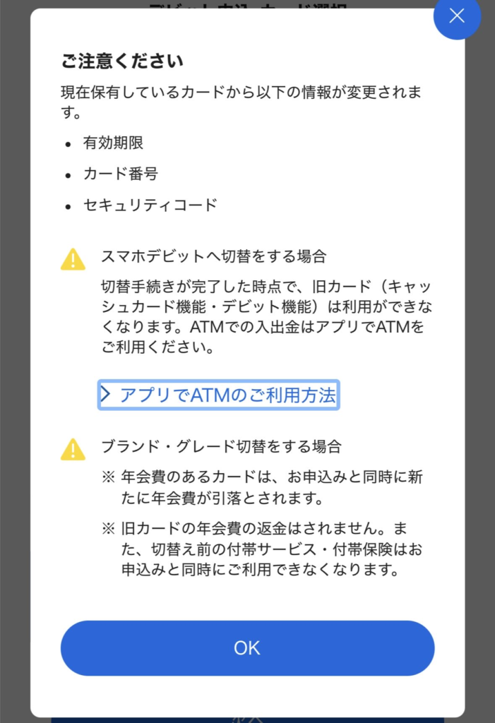 ただ、「切替」が条件にあるので、デビットカードを「新規発行」した方は対象外なのかな?そんな変な条件にはしないと思いますが…よく分かりません。