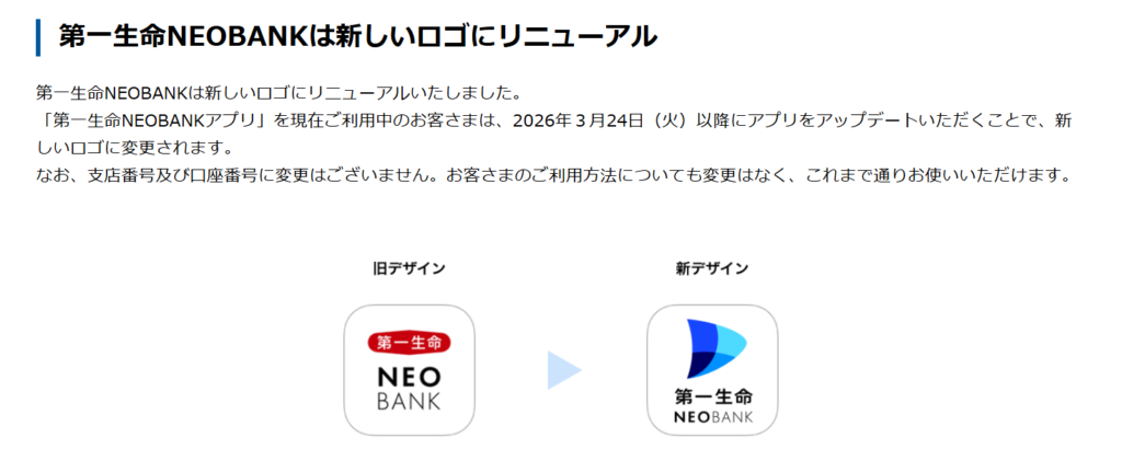 出典:第一生命NEOBANK、「デビットリニューアルキャンペーン」を実施 | プレスリリース | NEOBANK 住信SBIネット銀行