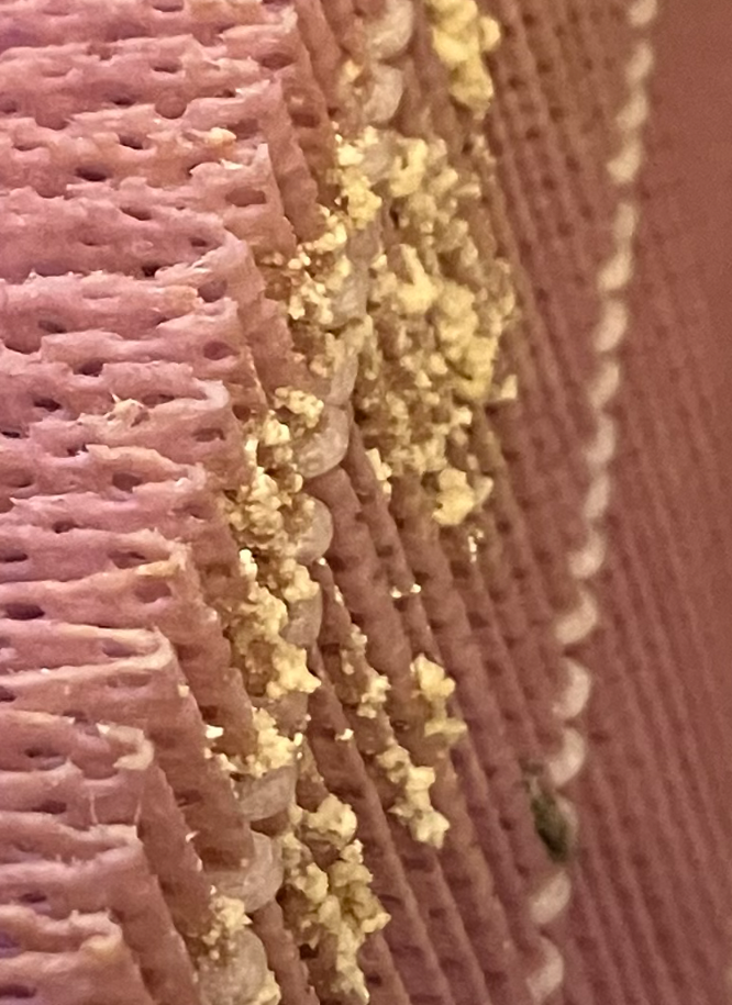 「給水タンクが空になった状態で長時間放置しない」と言ったのに、早速やらかしたようで、給水タンクが空になったまましばらく放置してしまったかもしれません。フィルター側面が変色。こういう部分が増えると加湿性能が落ちそうです。