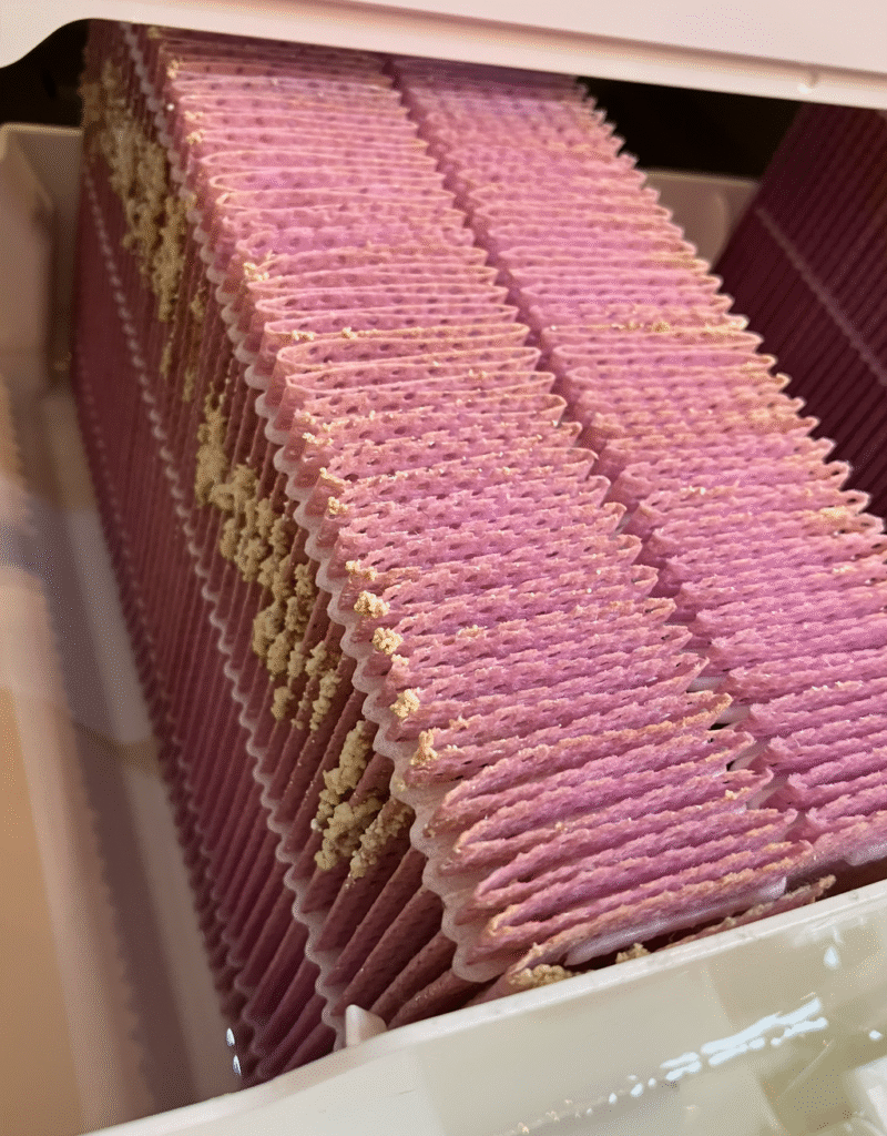トレイを掃除していなかったので、フィルターのピンク色が移ってしまいました。こういったトレイの汚れもキレイにします。