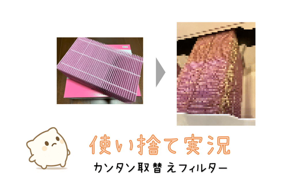 ちなみに、汚れが付着するペースは通常のフィルターと変わらないので、加湿性能のことを考えると結局お手入れはした方が良いという結論に至ったりもしました。今回のように汚れの付着ペースを定期的にチェックしながら、適度にお手入れをするか、あるいは3か月未満であっても汚れがひどければ次の新しい使い捨てフィルターに交換をするのが良い気がします。