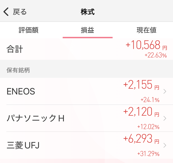 - 株価の変動を無視すると、10株購入で1株分プレゼント(地味にスプレッド分のコスト相殺のための配慮なのか価格に10%上乗せまで)と、10%還元を合わせると、約20%還元で株が買えるのでお得