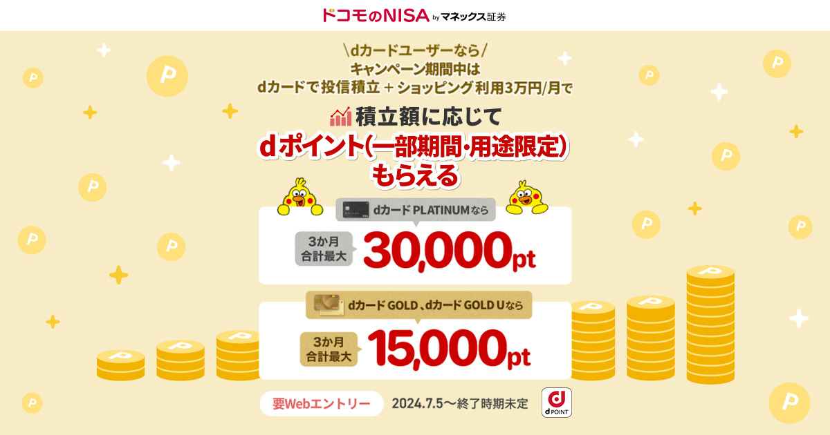 dカードPLATINUMおよびdポイントをうまく活用するため、マネックス証券の力を借りたいと思います。
