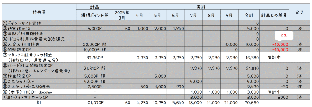 - 獲得ポイントの合計、実質コストの合計には、クレカ積立の分を含めて計算(とする予定)