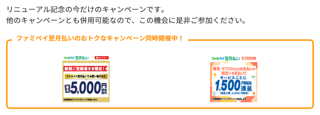 ファミペイ翌月払い関連のキャンペーンが豪華です。気合入ってます。