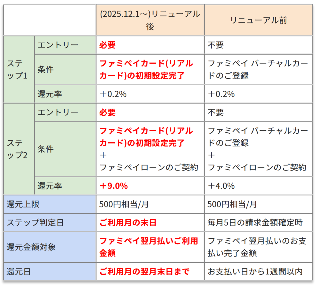 ただし、+9%となるステップ2の条件にはファミペイローンの契約が前提となります。一応、借入の実行は不要なので、借金をしたり金利を支払う必要性は無し。