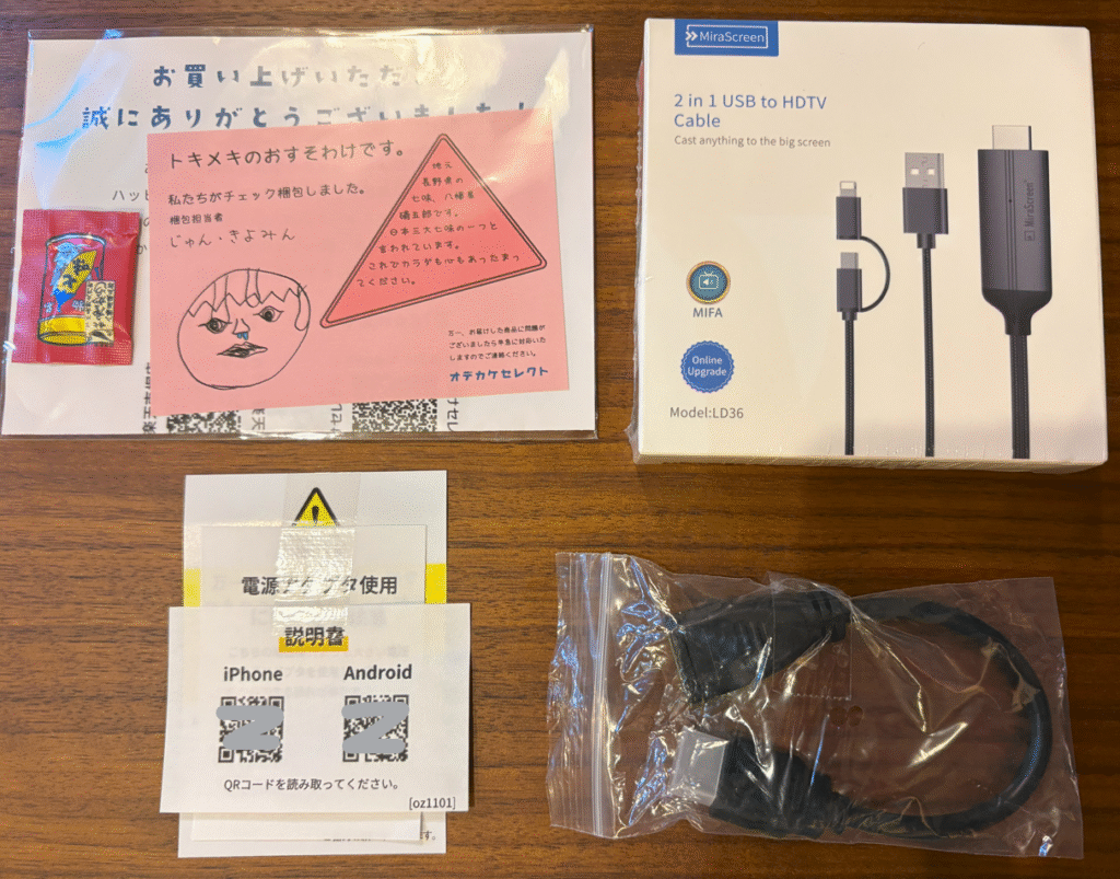 以前からスマホやタブレット等のデバイスからの有線での映像出力にちょっと興味があり、今回はYoutubeのみずおじさんの動画でなかなか万能そうなミラーリングケーブルを見つけたので思わず買ってしまいました。
