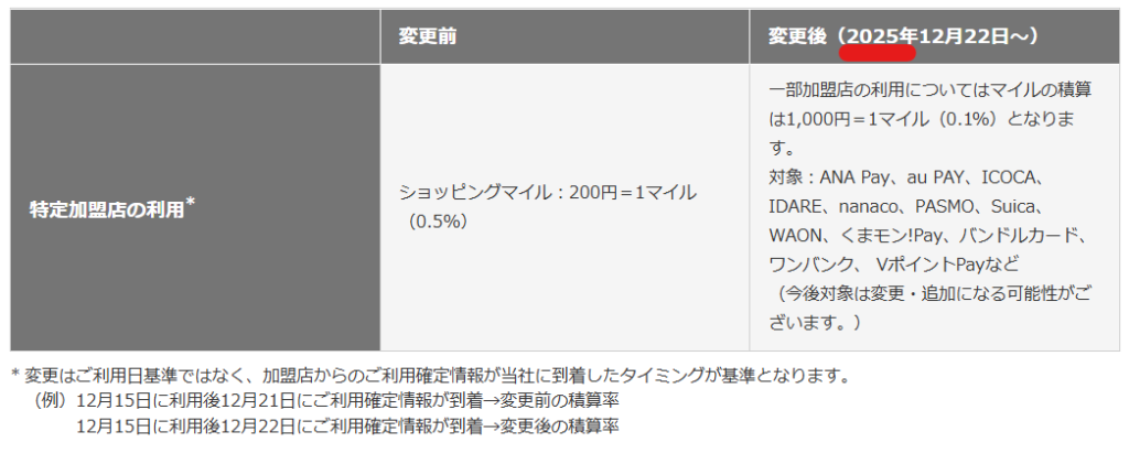 延期になっていた「JAL PayマイルUPプログラム」の開始日程が確定したみたいですが、2025年12月19日午後2時ごろから既に適用済みのはずの JAL Payからの各種チャージ系利用の還元率が0.5%から0.1%にダウンする件の記載がちょっとおかしいです。
