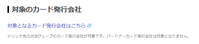 以前は以下の記載で、リンク先のJCBグループのカード発行会社が対象でした。主に銀行系が含まれます。
