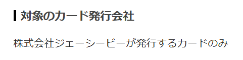 対して、今回のキャンペーンでは株式会社ジェーシービーが発行するカードのみが対象となっています。