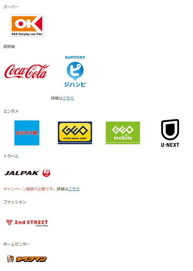 現時点で、その他の対象店舗は以下です。三菱UFJカードとは違っている部分もありますし、使いやすいPontaポイントが貯まるのも嬉しいところです。