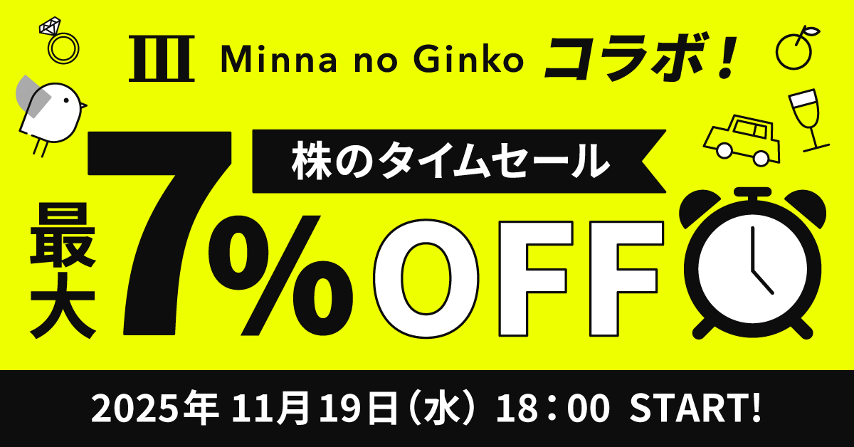 それから、みんなの銀行の口座保有者は、特定の条件(クイック入金)を満たすと、お得な株のタイムセールに参加できたりします(開催される時期に案内があります)。