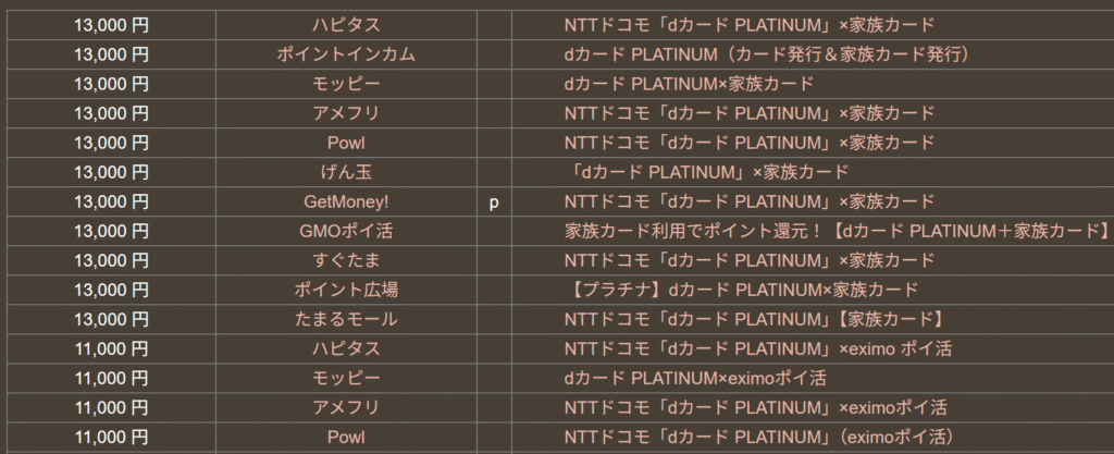dカードPLATINUMやdカードGOLDはポイントサイト案件があります。