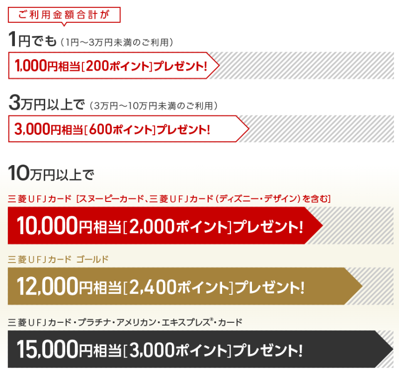 対象者限定、三菱UFJカードの好条件なキャンペーンでした。