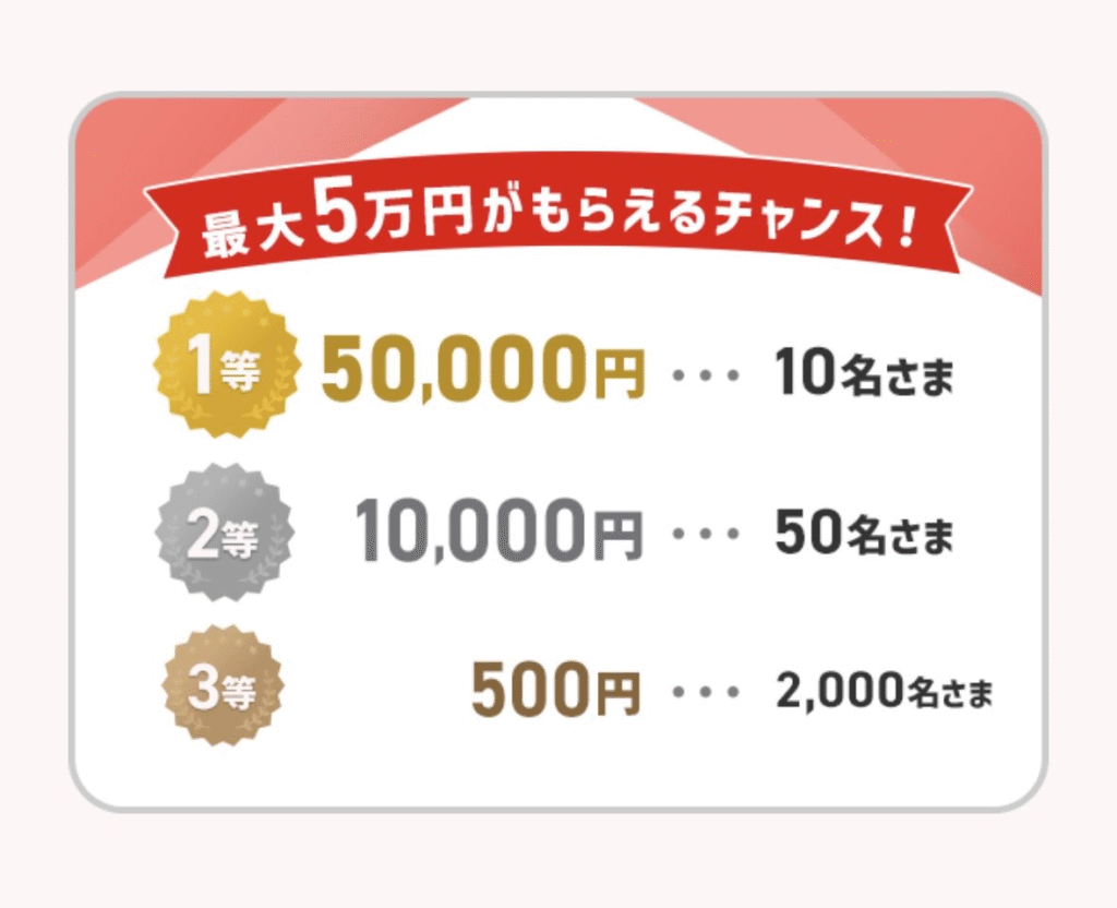 どちらも抽選なのですが、既存キャンペーンに取り組むついでに参加しておいて当選したらラッキーくらいの内容かと思います。