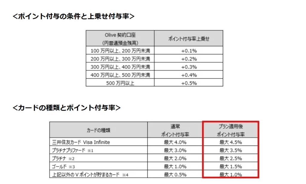 預金額に応じてクレカ積立が最大+0.5%になる、Olive限定上乗せプランの話題でした。