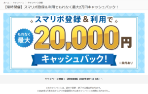 - スマリボのキャンペーン 最大30,000円分のキャッシュバック