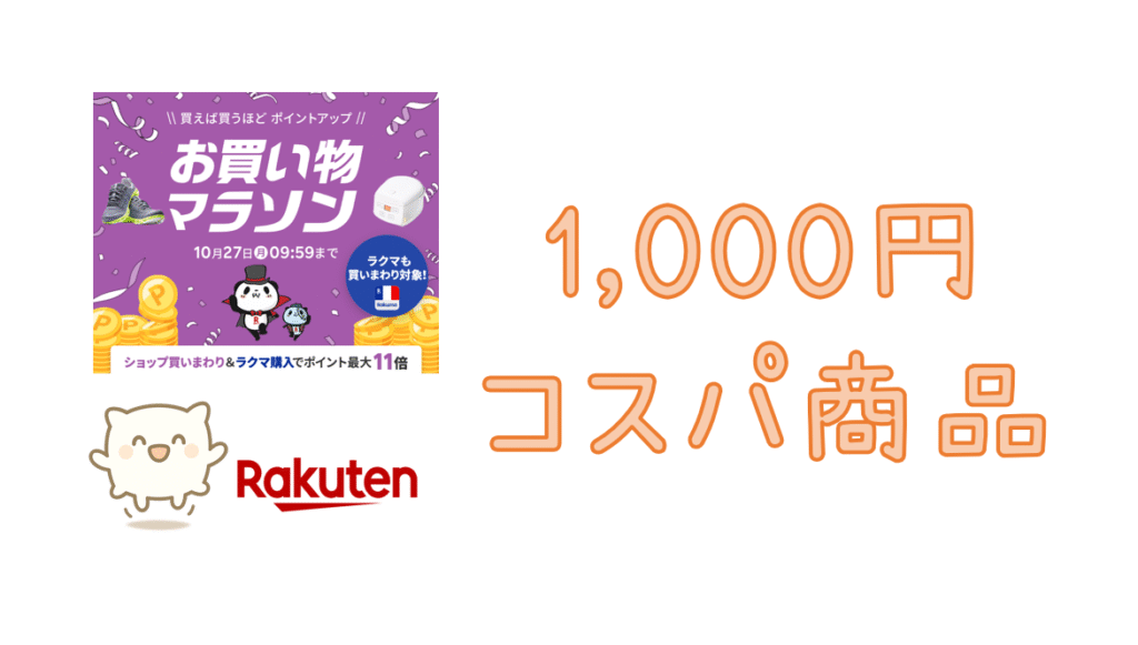 楽天市場のお買い物マラソンの買いまわりのショップ数のカウントに使えそうな 1,000円商品をまとめてみます。