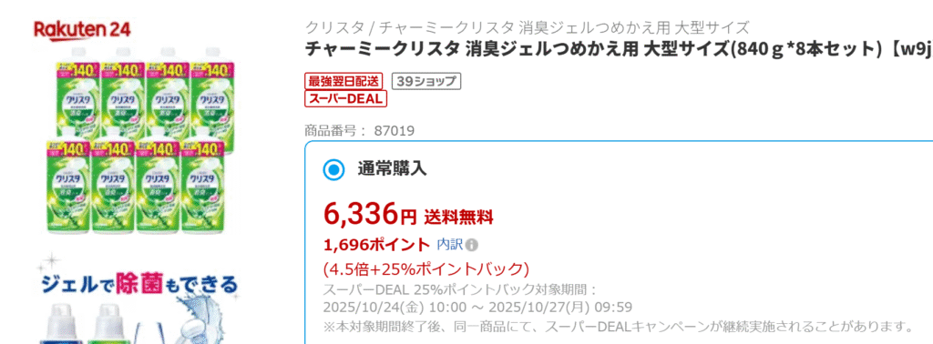 洗剤などのまとめ買いがスーパーDEAL対象で25%還元になってたりすると、さらにお買い物マラソンやSPUの還元率と合わせれば結構お得かと。