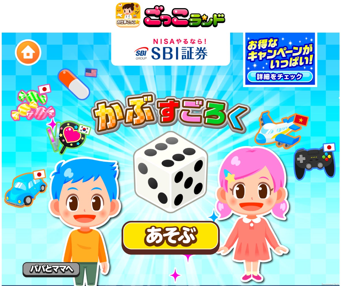 ちょっと話が逸れますが、SBI証券は、子ども向けの社会体験アプリ “ごっこランド” で “かぶすごろく” というミニゲームを提供しています。他にも色々な実在企業のミニゲームがあって面白いので、興味のある方はお試しください。