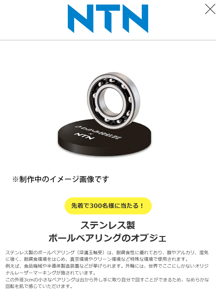先着のボールベアリングのオブジェは当選できました。抽選の方は落選しました。