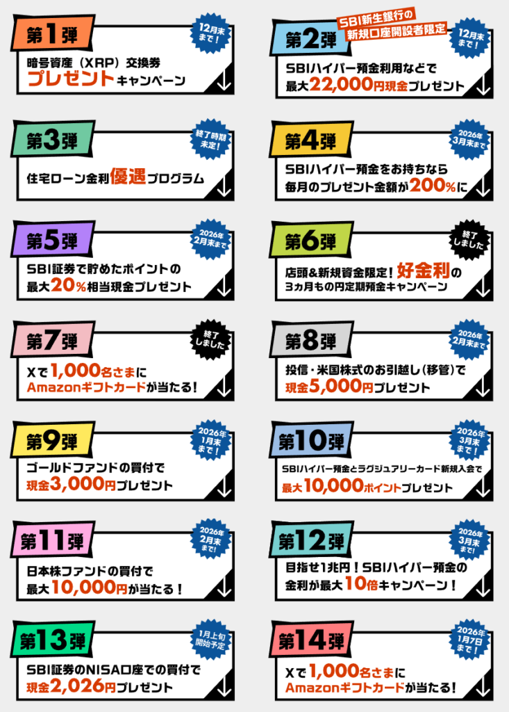 【第1~15弾まで一覧】SBI新生銀行 SBIハイパー預金スタートダッシュキャンペーン祭り