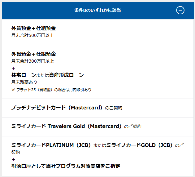 普段使いの銀行口座として利用する分には達成しやすいので、これは改善かと思います。