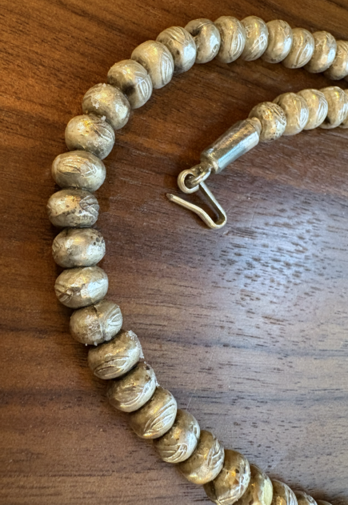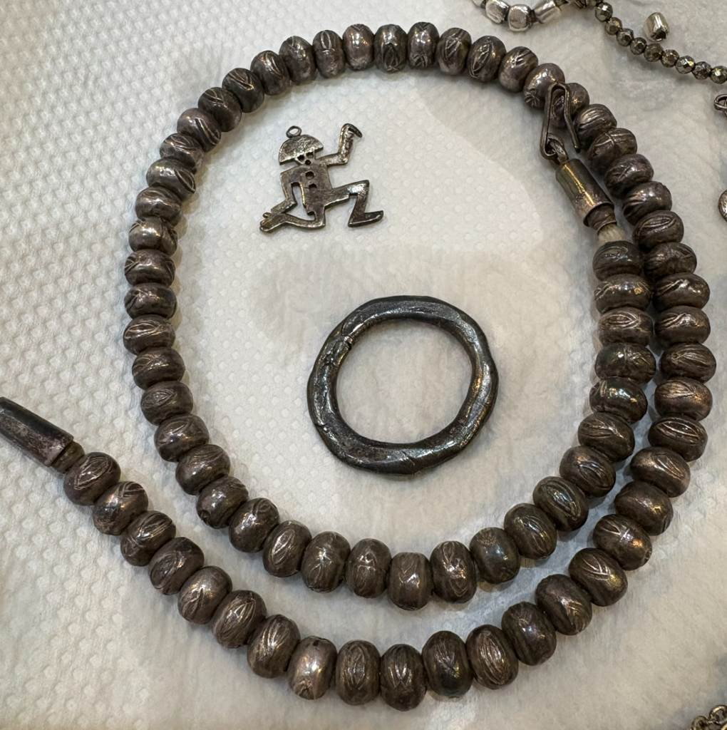 ネックレスは、確かタイのカレン族のシルバーです。楽天とかでも売ってますが、これは昔のものです。今見ると大粒です。