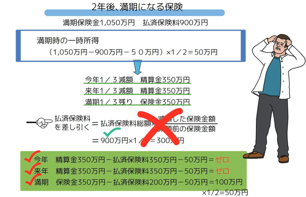 解約返戻金のある保険を複数回(複数年)に分けて解約したときの一時所得