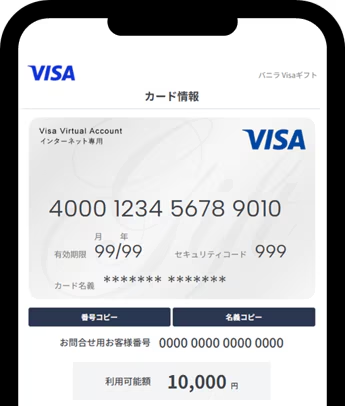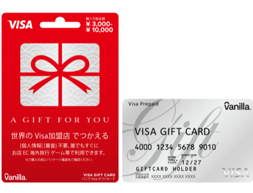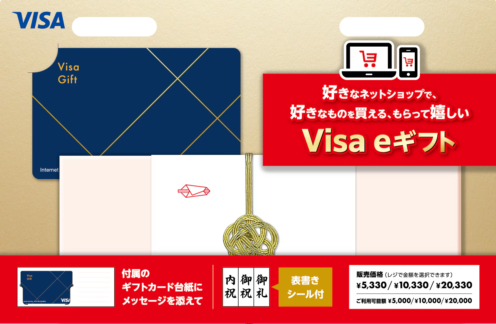 ※Visaギフトカード(ギフト包装)の購入手数料等は、購入金額の5%の手数料(課税)。ただし購入手数料は無料キャンペーン中(終了日未定)。