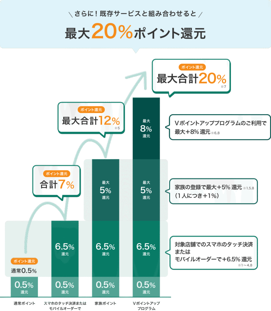 (※2) 最大+8%を超える場合、および合計で最大20%を超える場合もあるが、景品表示法により適用される還元率の上限は20%