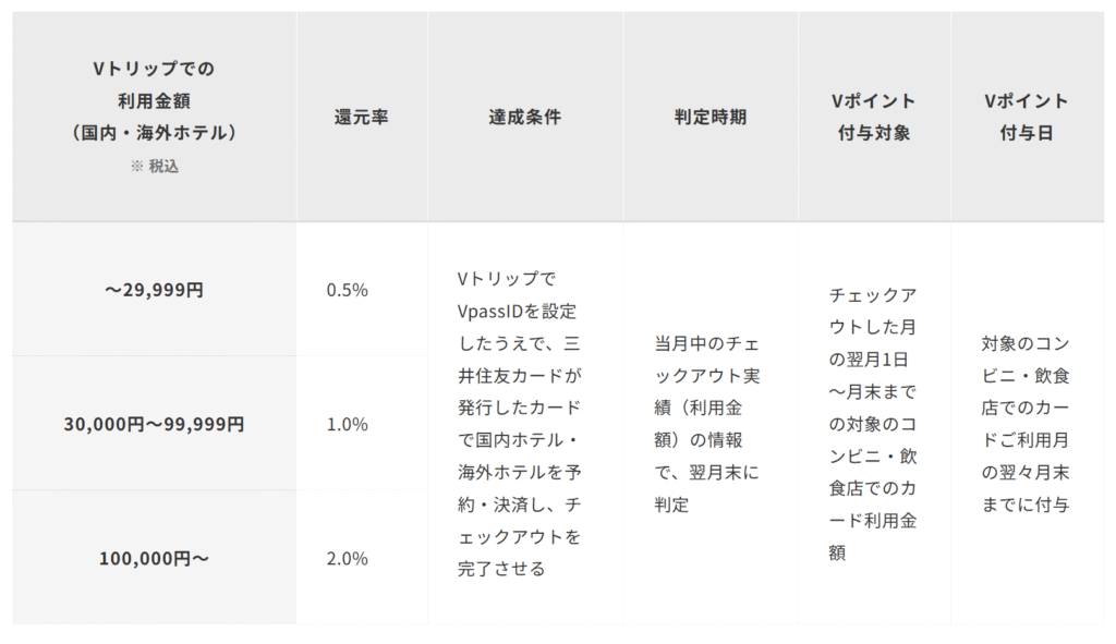 出典:Vポイントアッププログラム(Vトリップ)|クレジットカードの三井住友VISAカード