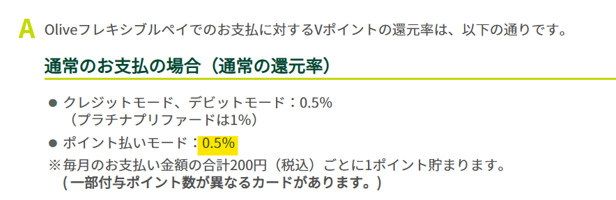 (余談)Oliveフレキシブルペイのポイント払いモードも0.5%還元に
